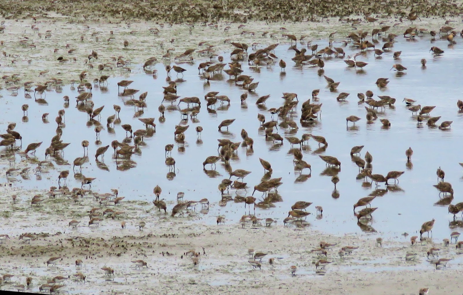 Did we say shorebirds? There were lots and lots of shorebirds. Fascinating to see and hear them feeding. Several years ago we were in Kachemak Bay Alaska by Homer for the Shorebird Festival. The main group of shorebirds numbering several hundred thousand are there May 8th to may 12th (Approximately). These little guys have a ways to go and need to go quickly.